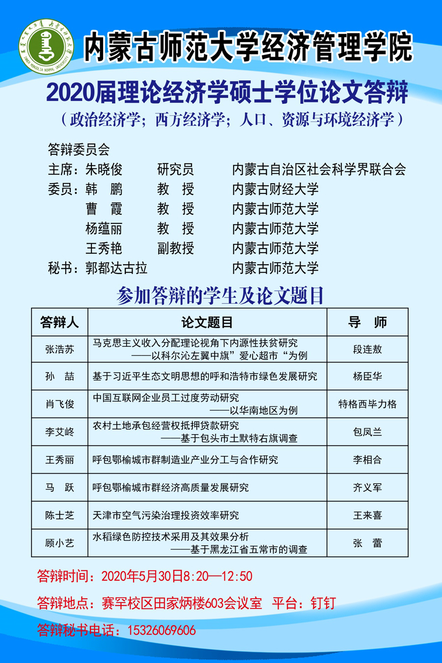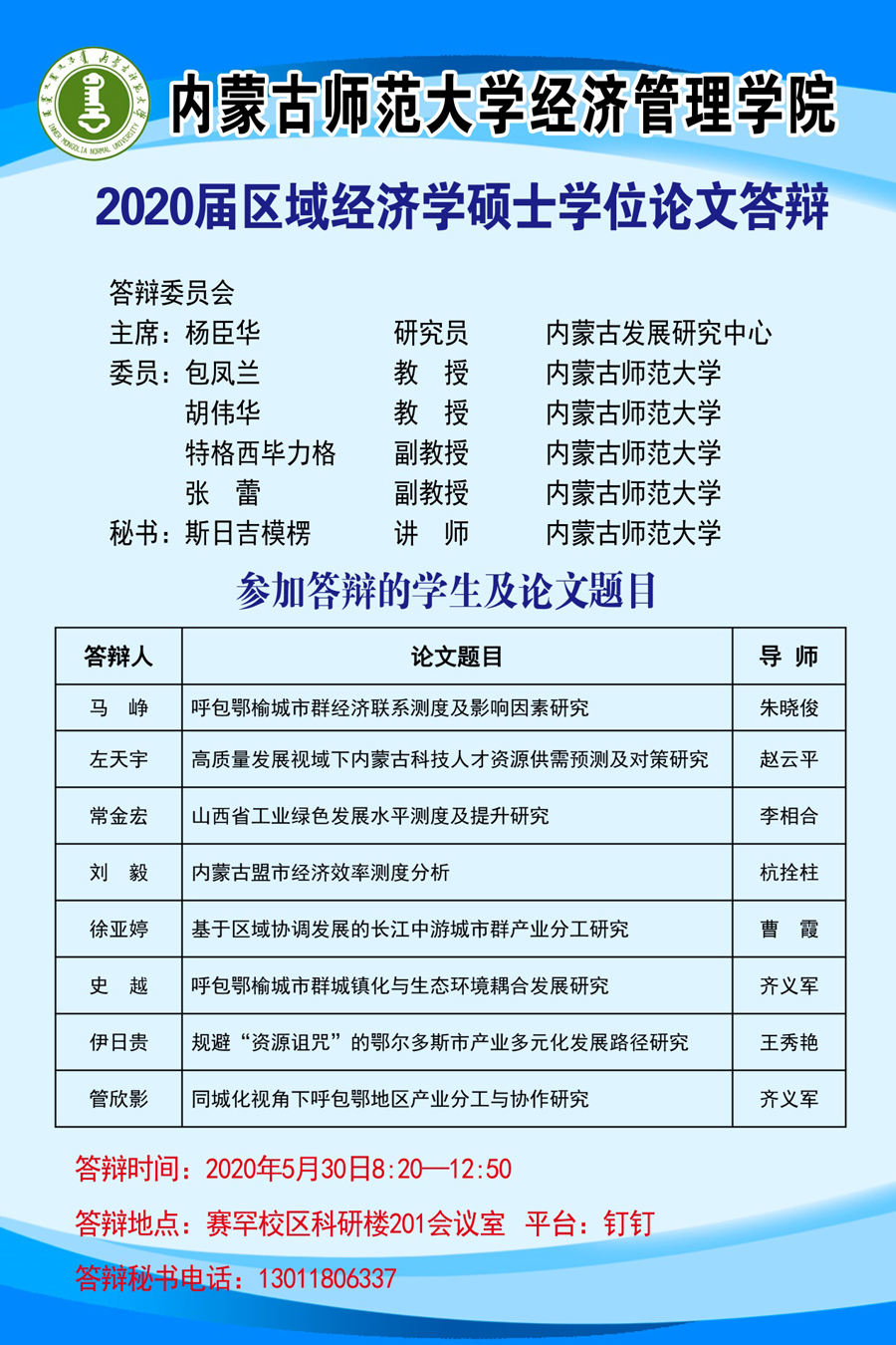 bevictor伟德2020届硕士学位论文答辩安排