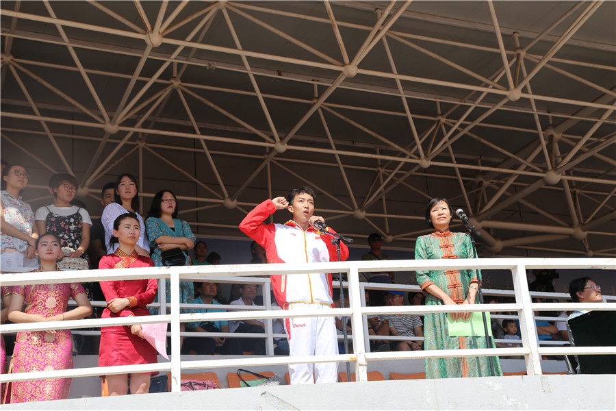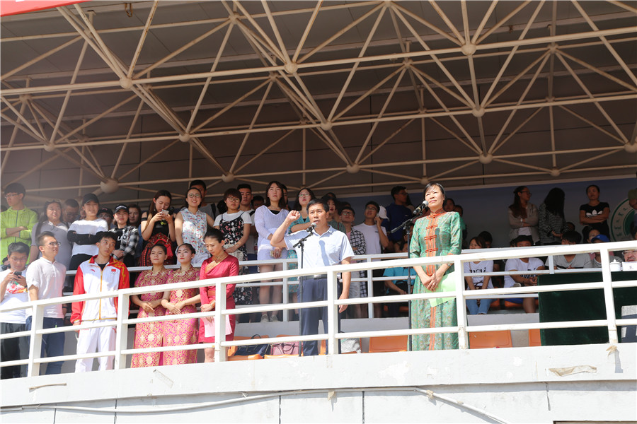6月14日上午,伟德国际1946第三届校园奥林匹克运动会暨第五十五届田径运动会盛大开幕,公司校十佳文体之星——14级人力班陈国峰同学担任了本届运动会主火炬手,14级会计班王普正同学代表全体运动员在开幕式上发言。公司运动员代表方阵整齐划一,朝气蓬勃,以饱满向上的热情展示出了公司运动员勇争第一的精神风采。