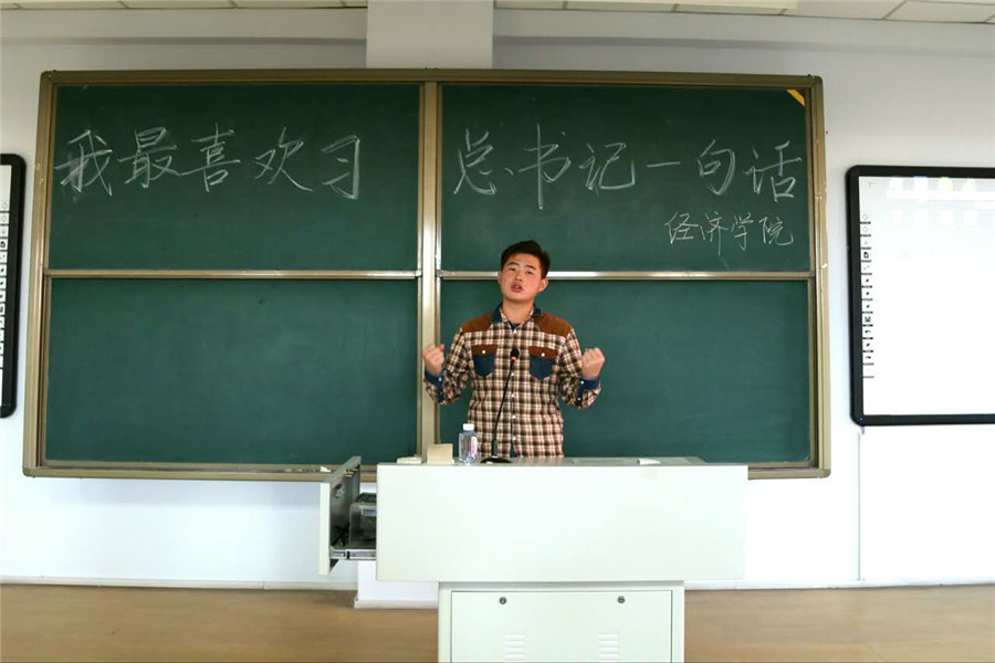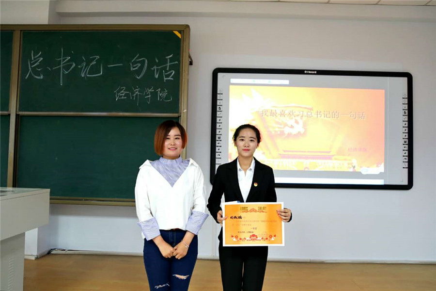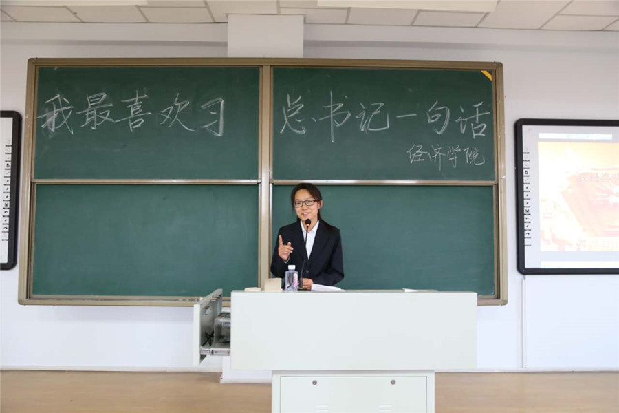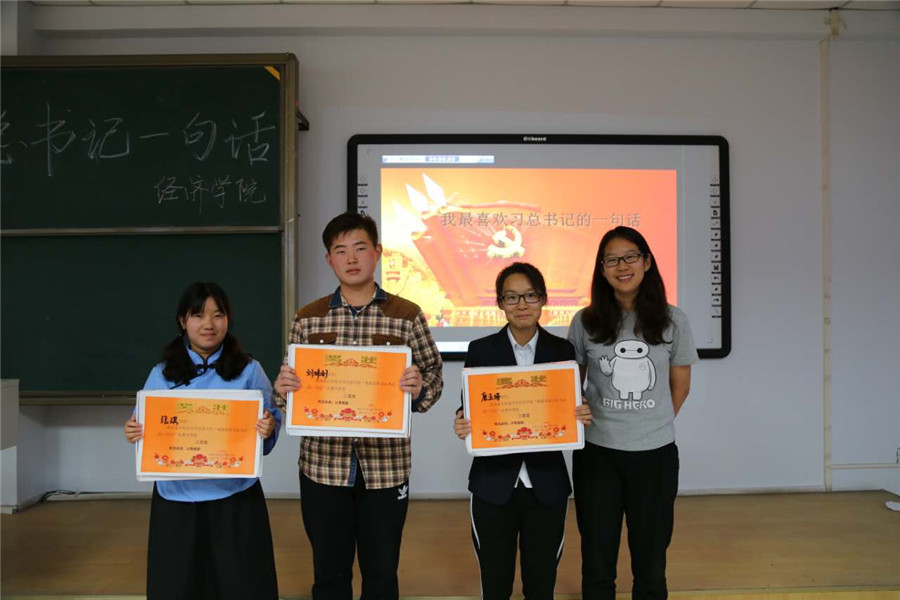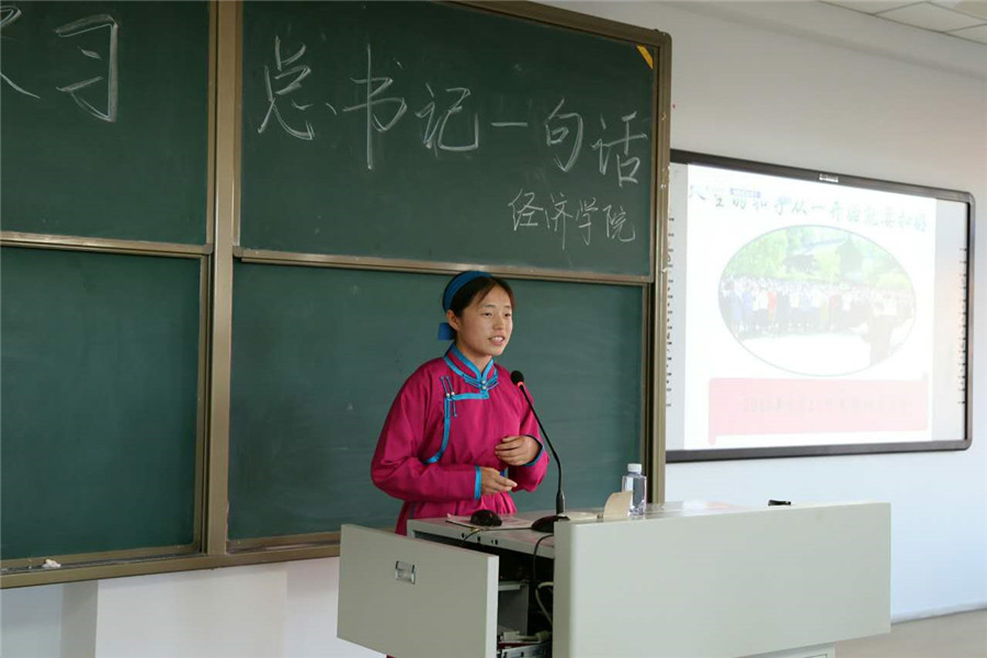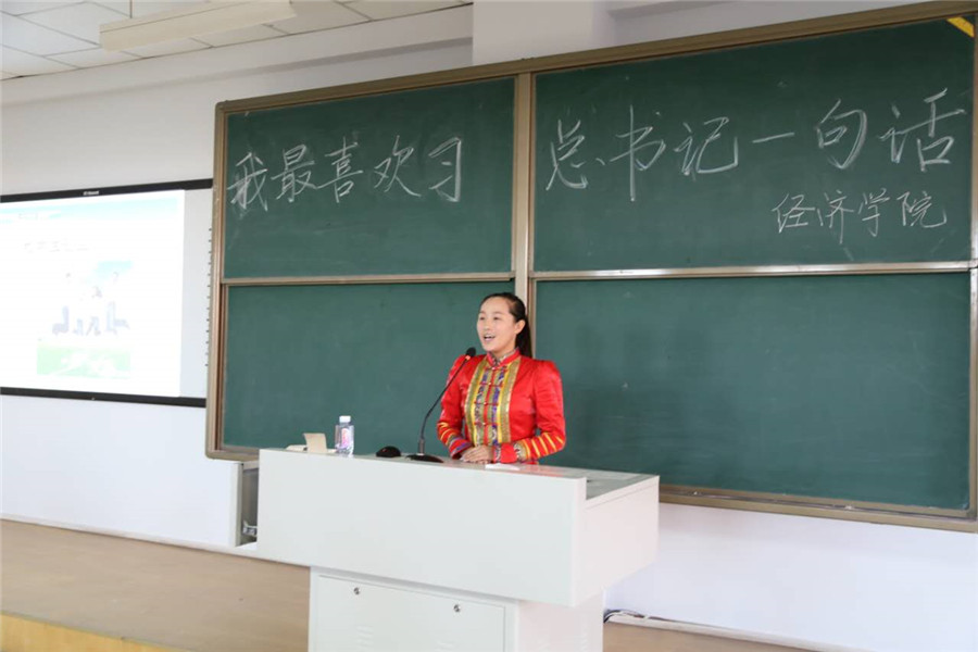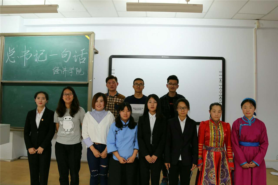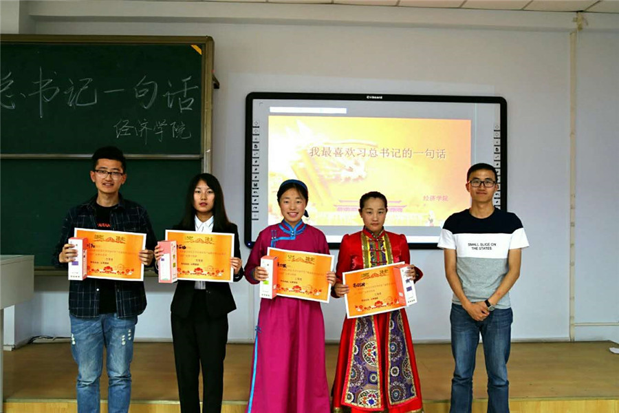 比赛分为初赛和决赛两个阶段,经过初赛的激烈竞争,共有八名选手脱颖而出,顺利进入决赛。在决赛中,这八位选手再次上演了激烈的比拼,每位选手都选出自己最喜欢的习近平总书记的一句话,并结合生活实际进行分析,给观众带来一场精彩纷呈的演讲比赛。最终,15经汉班的时婉璐同学荣获一等奖;16经汉班张琪,16会计班刘伟钊,16农区班唐玉婷同学获得了二等奖; 16经蒙班车力根、苏日古格,16人力班郝茹娅,16经汉班刘阳同学获得了三等奖。