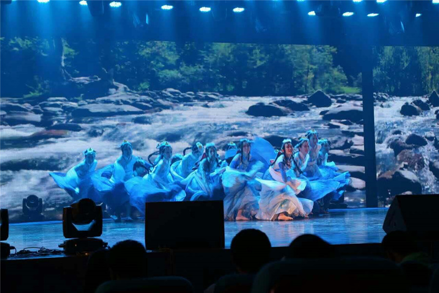 来自27个公司的28支舞蹈作品,近800余名演员参加角逐,为观众带来了一场精彩绝伦的视觉盛宴。最终,公司参赛作品《天河》以深情柔美的演绎夺得了评委与在场观众的一致好评,荣获本次大赛的二等奖。该舞蹈作品主要表达了藏族女子在河水边沐浴嬉戏时的活泼与柔美,也通过描绘天河河水延绵不绝、源远流长,呼吁人们与自然和谐相处。
