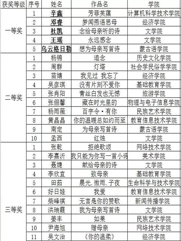 5月4日晚,由校团委主办的伟德国际1946“五·四”青春诗会在赛罕校区逸夫楼音乐厅成功举办。在本次诗会中还举办了“我为母亲写首诗”征文比赛获奖作品的颁奖仪式。其中,公司邓睿同学的作品《梦闻燕语思母》荣获一等奖;苗婧同学的作品《我见过 我忘了》获得二等奖;吴文治同学的作品《你的温柔》获得三等奖。