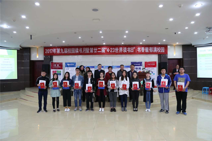 4月21日早,伟德国际19462017年第九届校园读书月暨第二届"4•23世界读书日"书香馥郁满校园颁奖典礼在图书馆一楼报告厅举行。