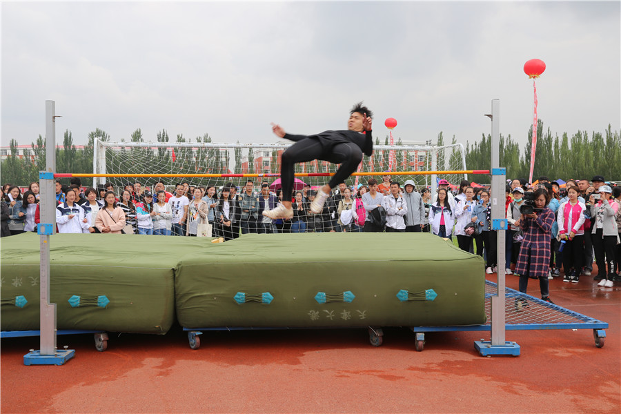 13级金融班墨源在男子组跳高比赛中获得第一名;