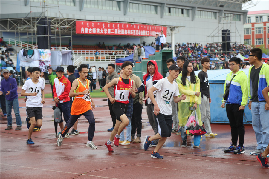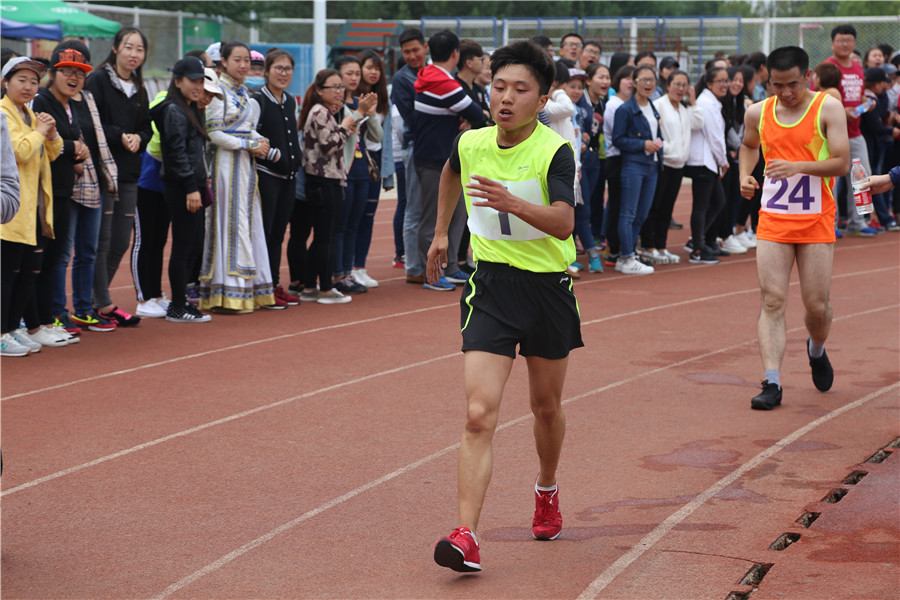 15级会计班玉光、15级经蒙班金宝音图在男子组5000米竞走决赛中分别获得第二名和第六名;