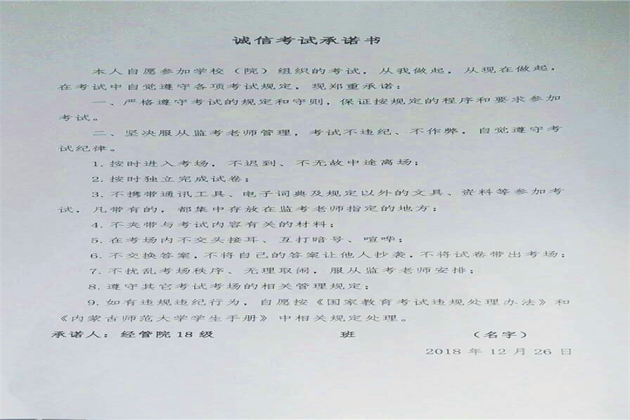 随后公司员工签署了考试诚信承诺书,内容如下: