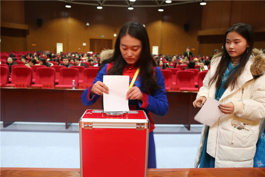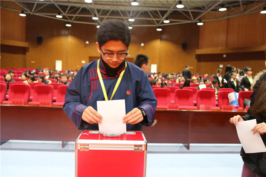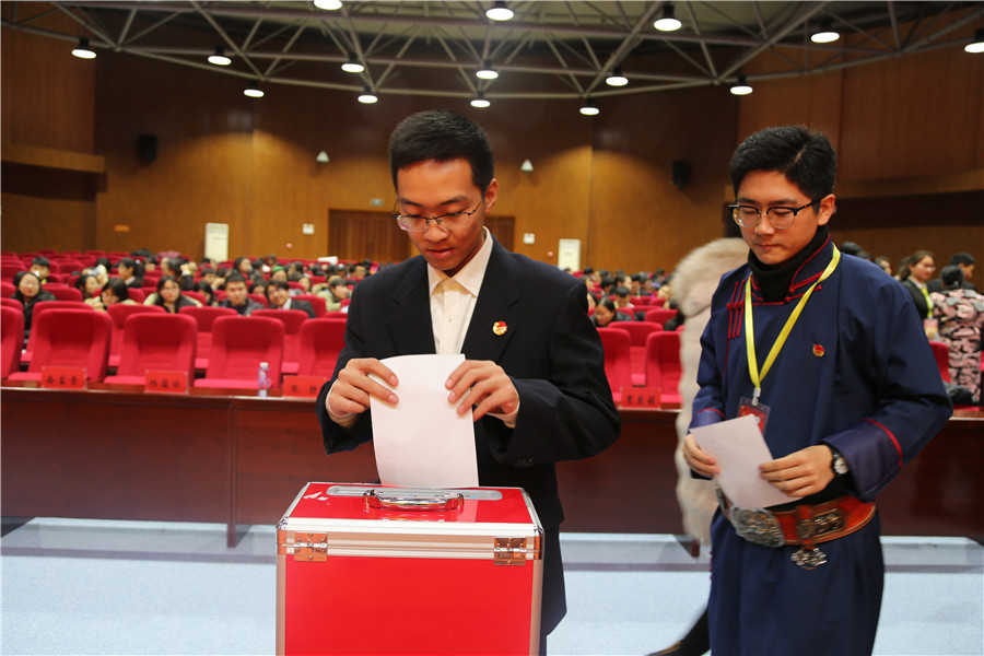 下午14:30由学代会执行主席额尔墩仓同学,带领大会代表审定《大会选举办法(草案)》、《bevictor伟德第十三届员工会主席团候选人预备人选名单(草案)》、《大会选举总监票人、监票人、计票人建议名单(草案)》,获得全票通过后,大会选举正式开始。