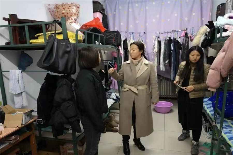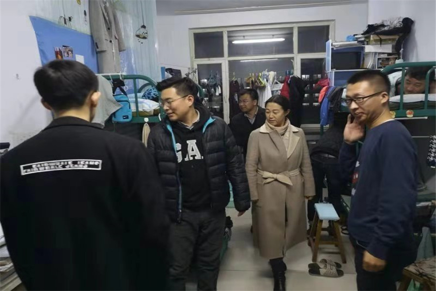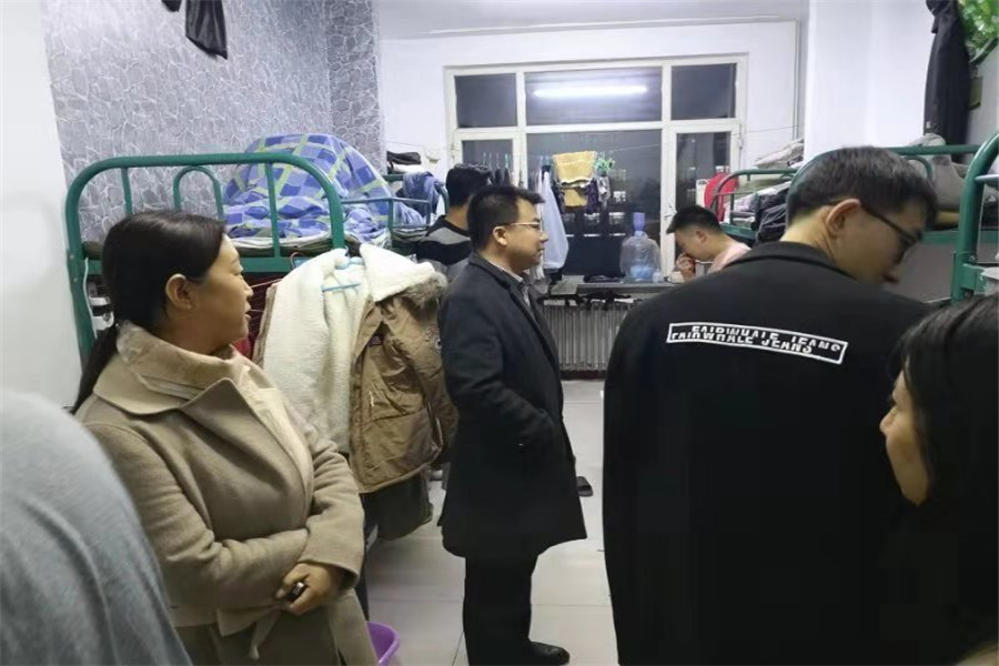 为响应公司近期有关安全、卫生检查的工作部署。2018年11月28日晚公司党委书记包凤兰老师,党委副书记兼副经理安广峰老师,团总支胡昱先老师,员工工作与就业指导办公室马泽远老师,辅导员郭喜桐老师、李佳楠老师以抽查的形式对十号楼一楼女生宿舍、七号楼所有男生宿舍、大二到大四部分男生宿舍进行了宿舍安全、卫生大检查。老师们针对员工的宿舍情况对宿舍卫生,宿舍使用电器,宿舍同学关系等具体问题提出具体要求,员工们认真的倾听,并表示会在日后生活中就存在的问题加以改正。此次宿舍安全、卫生大检查使老师们更加了解员工的具体住宿情况,也让员工们更加的明白公司对员工住宿的具体要求。