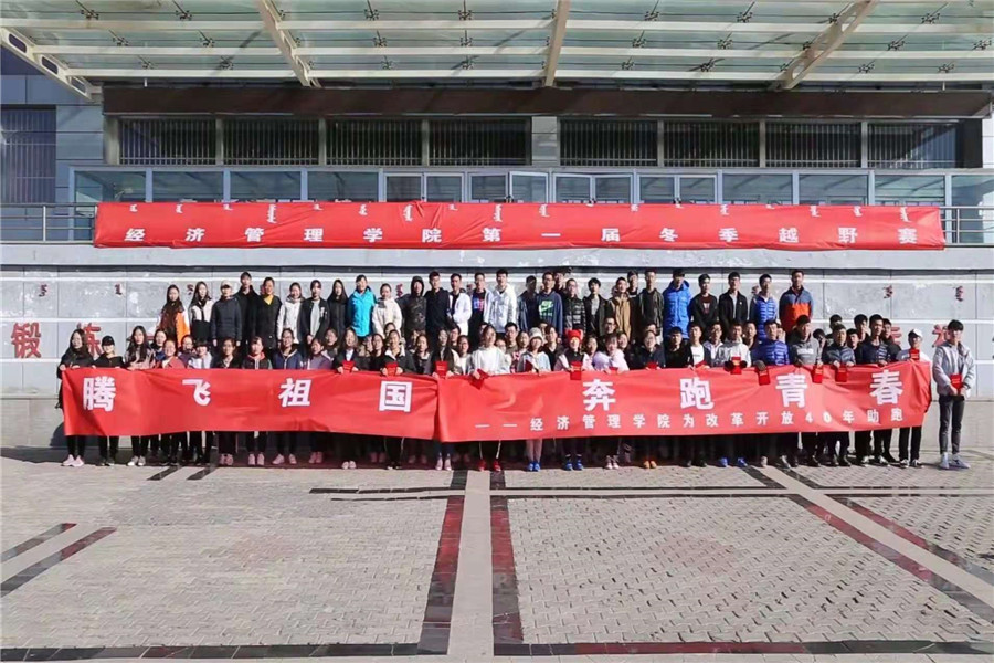 bevictor伟德第一届冬季越野赛于11月22日中午12:30在盛乐校区竞秀馆前鸣枪起跑。为庆祝改革开放40年所取得的辉煌成就,公司大一、大二的同学们积极加入到本次越野赛中,为祖国助跑、为改革喝彩。