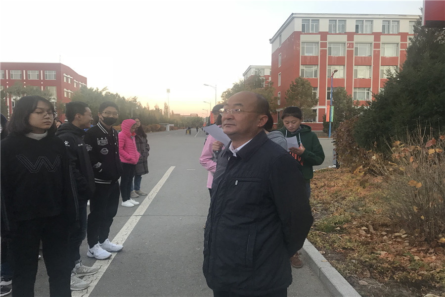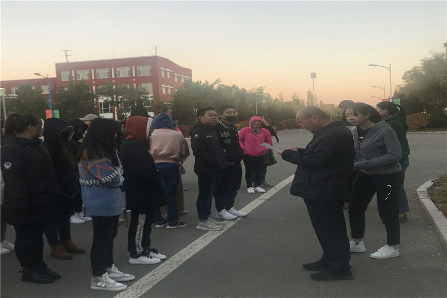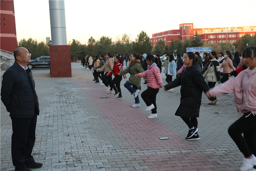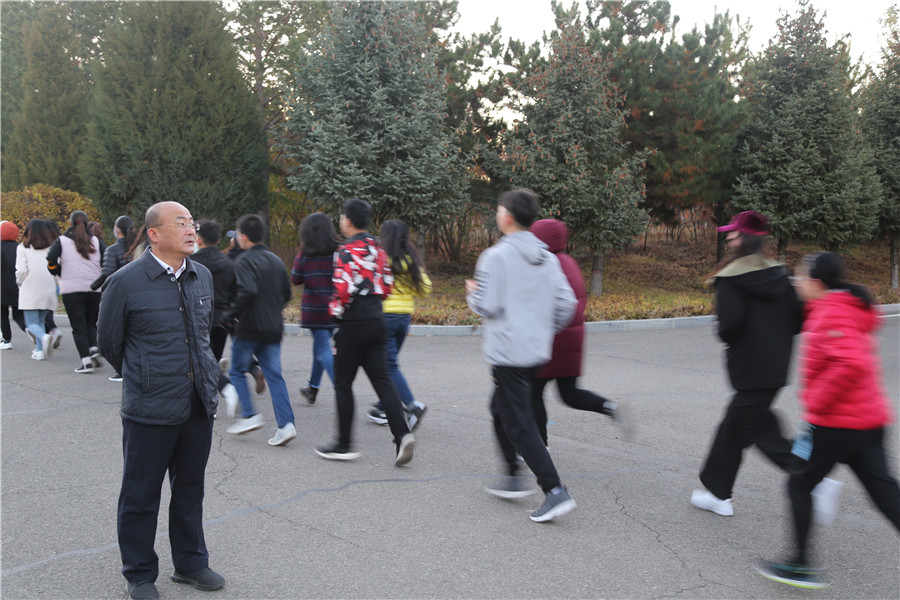 10月17日,公司党总支副书记单金平老师早早来到体育馆前看望跑操同学。经济公司的“天天酷跑”是单老师倡导的一项旨在增强老员工身体素质,养成天天锻炼好习惯的公司特色活动。同学们早早来到场地集合,单老师亲自查看点名单,观看员工跑步。跑步过程中,单老师叮嘱同学们放慢脚步,注意脚下。随后,单老师来到图书馆前了解大一广播体操训练情况。