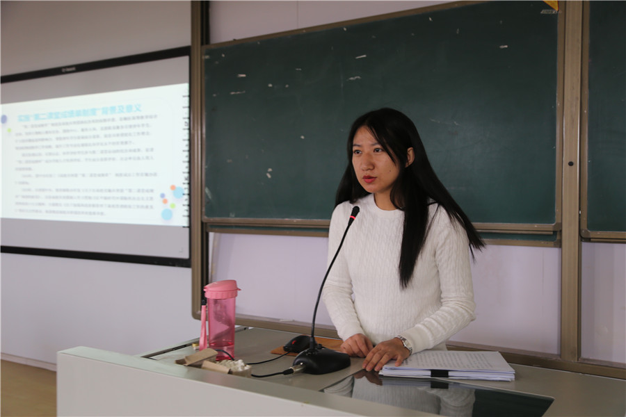 9月29日,公司辅导员郭喜桐老师对2018级新生进行了“第二课堂成绩单”制度实施办法的培训。
