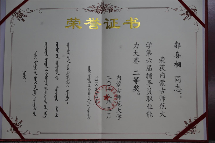 2018年3月,公司教师在2017年度员工员工工作先进集体、先进个人表彰中获得荣誉,吴高娃老师荣获伟德国际19462017年度“员工工作先进个人”,郭喜桐老师荣获伟德国际1946“第六届辅导员职业能力大赛二等奖”。杨蕴丽、岳富贵、麦拉苏、南铁军、张昆五位教师荣获伟德国际1946 2017年度“优秀班主任”称号。