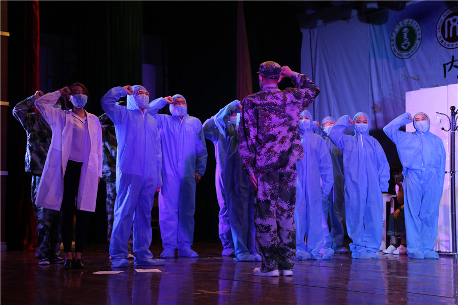 经过一个多月的辛苦排练,舞台剧演员们一遍又一遍的串台词,琢磨每一个动作,他们在反复的排练中做到彼此默契,互相配合。在激烈角逐的比赛中,他们互相打气、相互团结,最终在舞台上脱颖而出,真情实感流露其间,将抗击非典的决心与毅力完美呈现在观众面前,赢得了在场评委老师及观众的一致好评。