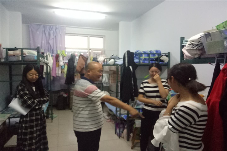 为落实公司员工工作处关于宿舍安全工作的通知,切实加强公司安全稳定工作,确保员工人身财产安全,5月23日晚,公司党总支副书记单金平老师,辅导员郭喜桐老师对公司员工寝室进行了走访和检查。