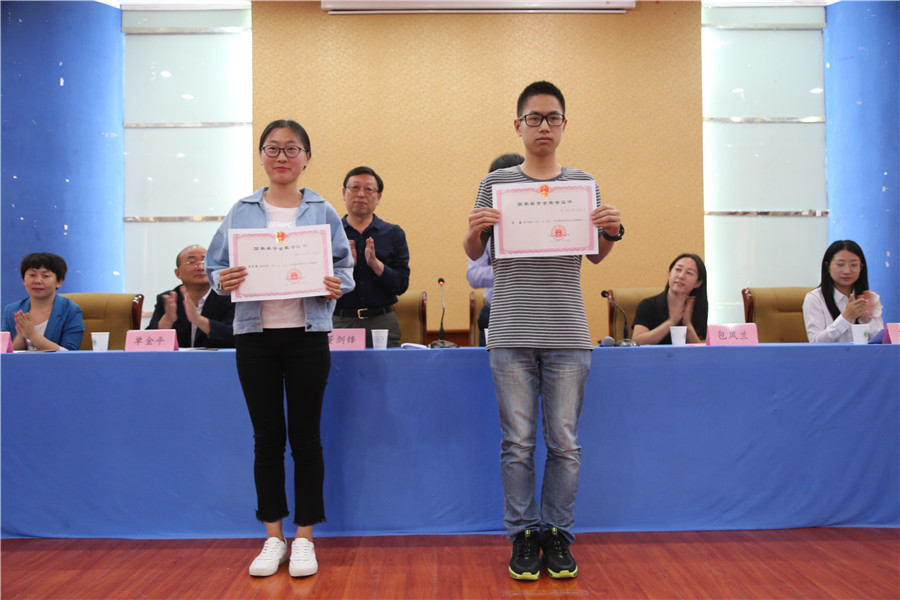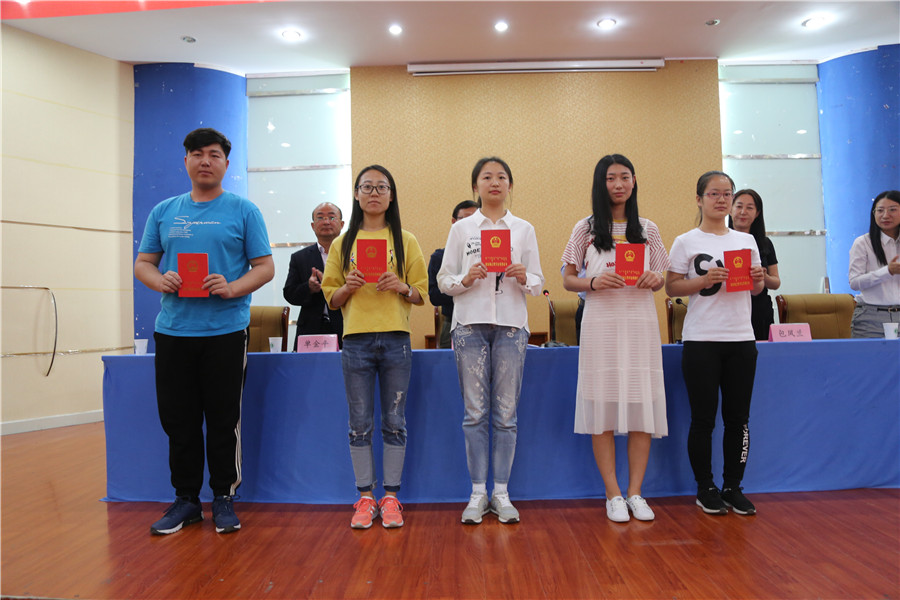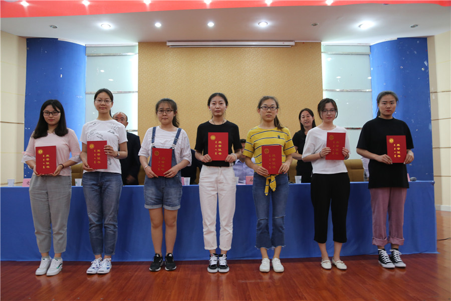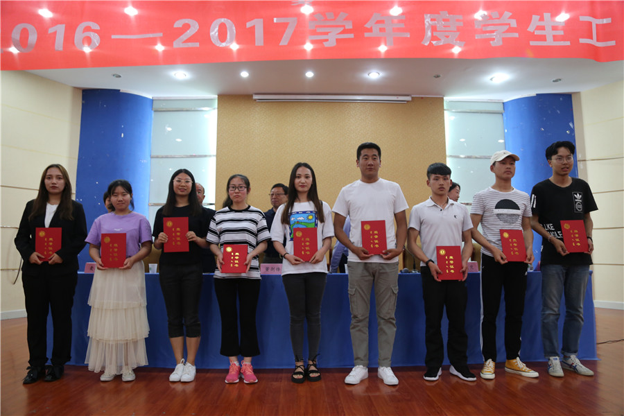 大会以奏响中华人民共和国国歌为开始,随后,石连柱老师和包凤兰老师宣读了公司在2016——2017学年度获得各类荣誉的集体和个人名单,包括国家奖学金、国家励志奖学金、自治区三好员工、五●四优秀共青团员等若干奖项,并为获奖员工代表颁奖。在大会过程中,获得国家励志奖学金的冷鑫同学和优秀班主任麦拉苏老师作为获奖师生代表上台发言。从冷鑫同学的讲话中我们看到了“再深的夜也有采芙蓉的人”的刻苦精神,从麦拉苏老师的讲话中我们感受到了来自经济公司班主任无私的关爱。