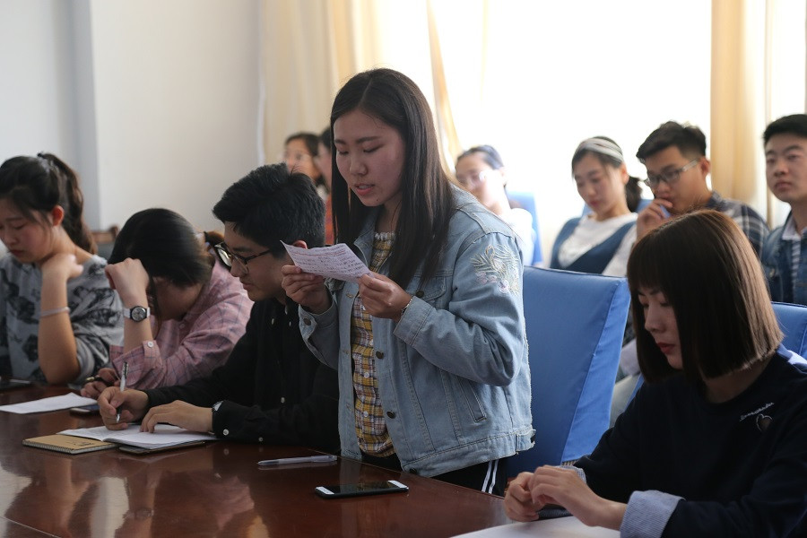 首先,郭喜桐老师宣读了《习近平总书记5月2日在北京大学师生座谈会上的讲话》和《李纪恒书记5月3日在内蒙古工业大学形势政策报告会上的报告》,全体参会人员共同学习了讲话精神。随后,单金平老师发表了讲话,提出老员工要深刻领会习近平总书记系列重要讲话精神,并不断学习马克思主义来增强行动的思想性,单老师引用习近平总书记语录:“人的一生只有一次青春。现在,青春是用来奋斗的,将来,青春是用来回忆的……”,鼓励各位青年员工认真学习做好员工的本职工作,为自己的目标而奋斗。