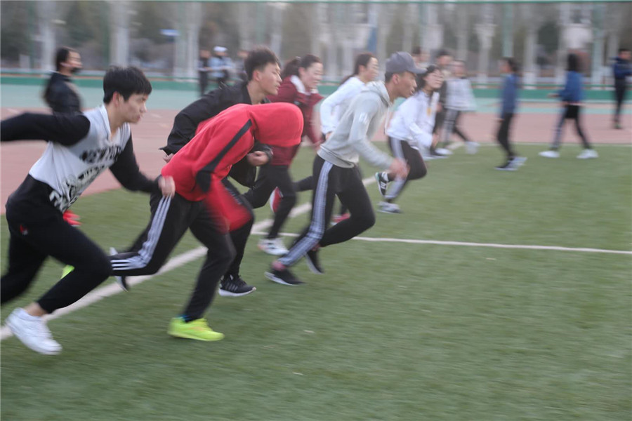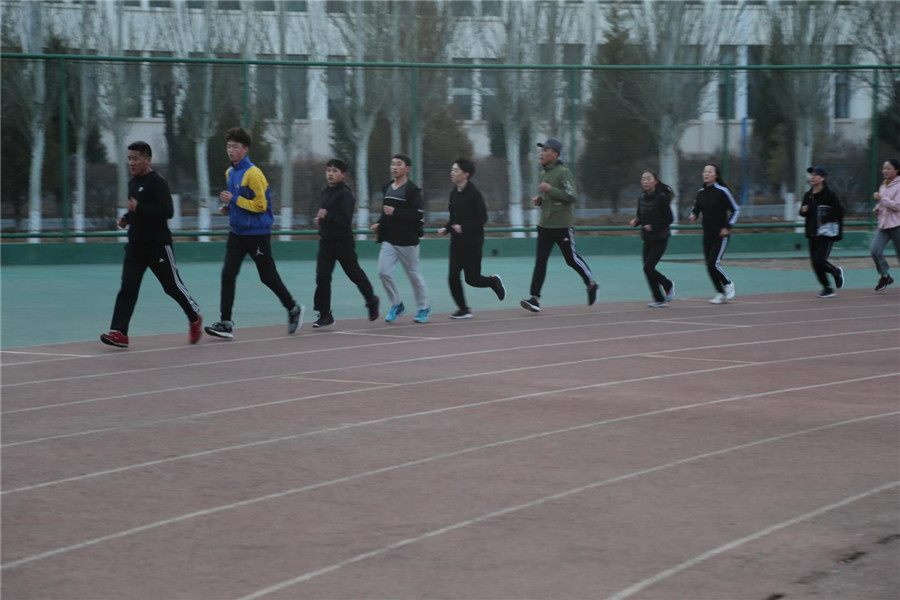 踏着清晨的微风,踢开朦胧的睡意,运动员们迈着矫健的步伐,在操场上刻苦训练。每一回坚定的奔跑,每一次拼尽全力的冲刺,每一滴挥洒的汗水,都是在积蓄力量。慢跑、加速、冲刺,他们以最认真的态度对待训练。成功的背后是艰辛,辉煌的背后是汗水,相信在教练与全体运动员的共同努力下,公司在今年的校运会上定可以厚积薄发,再创佳绩。