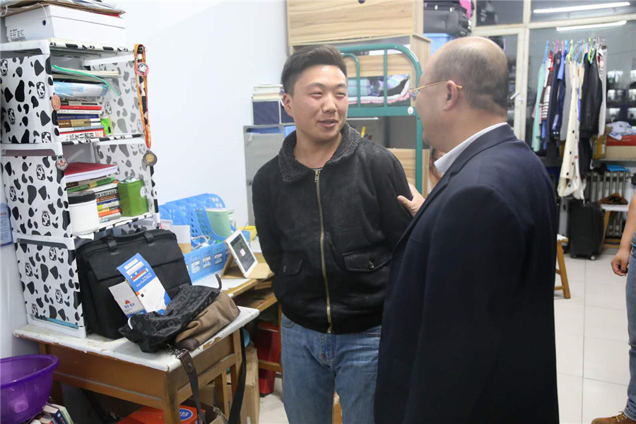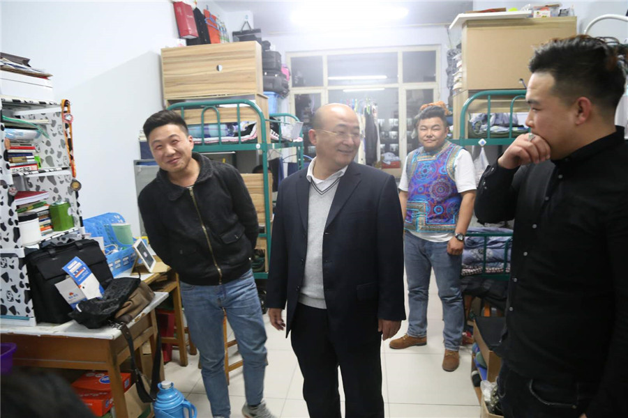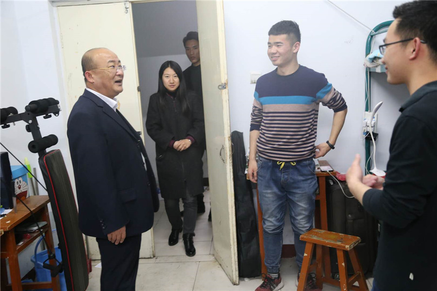 3月7日晚,为了解员工住宿条件和生活状况,把握员工的返乡思想动态,公司党总支副书记单金平老师、辅导员郭喜桐老师以及员工会干部走进员工宿舍,与员工进行亲切交流。