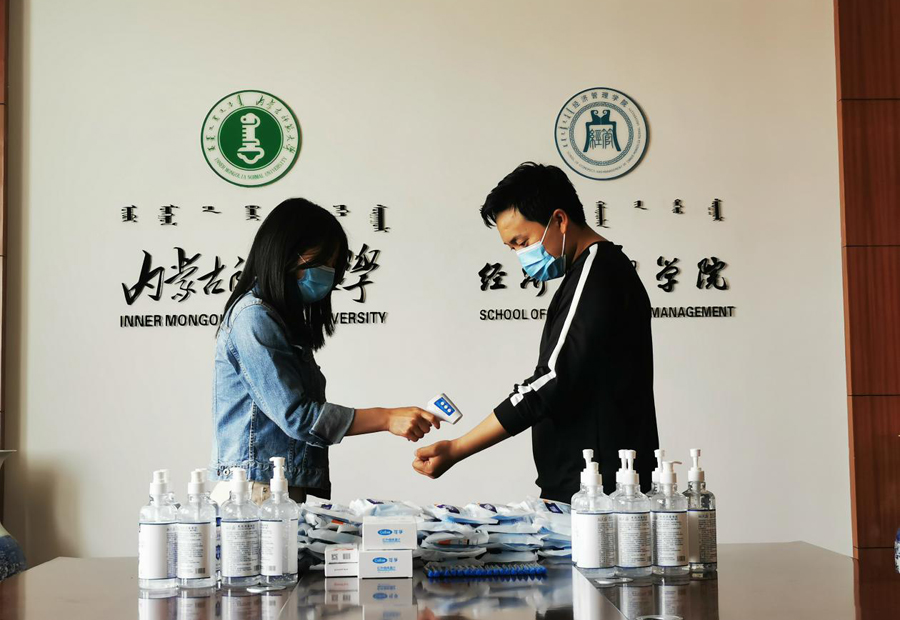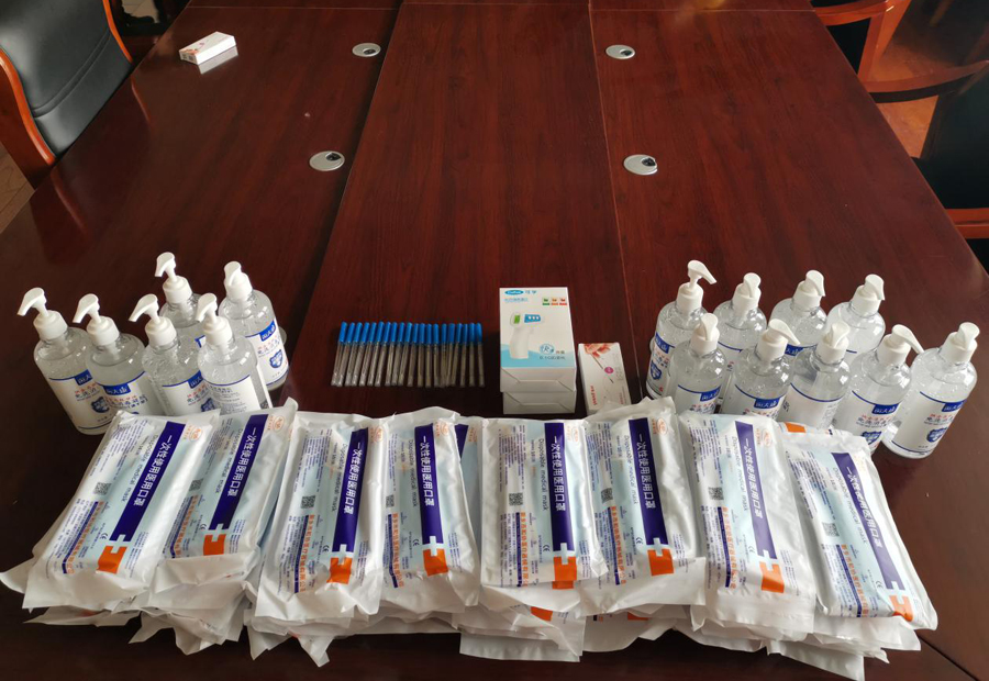 5月15日、16日院领导亲自迎接员工返校,并发放防疫物资(每人50个医用一次性口罩、温度计一支、免洗消毒液一瓶)。