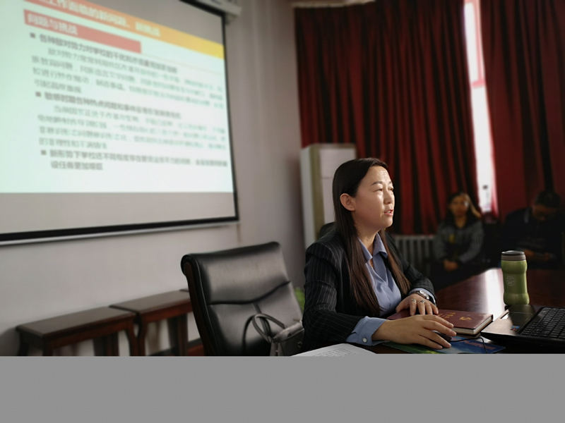包凤兰书记围绕2018年公司党建与思政工作总结、公司党建与思政工作面临的新问题和新挑战、公司党建与思政工作中存在的问题以及如何做好党建与思政工作等四个方面带领全体教职工,深入学习了黄雅丽书记的讲话精神。