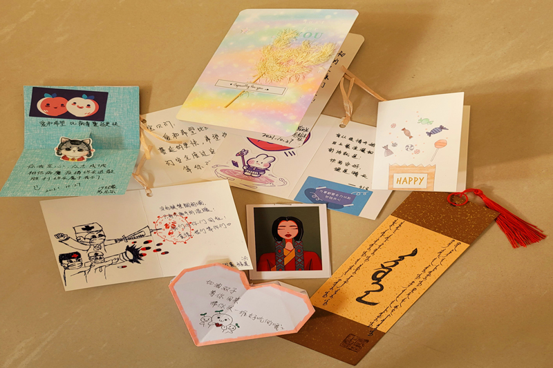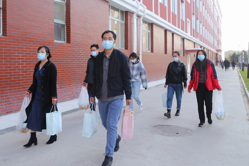 受疫情影响,公司有六名同学在公寓16号楼集中观察。10月28日下午,公司领导齐义军,胡伟华一行前往员工集中驻地,为同学们送上了水果、牛奶、酸奶以及其他日常物品,班级同学为他们撰写的各种祝福信件、卡片。