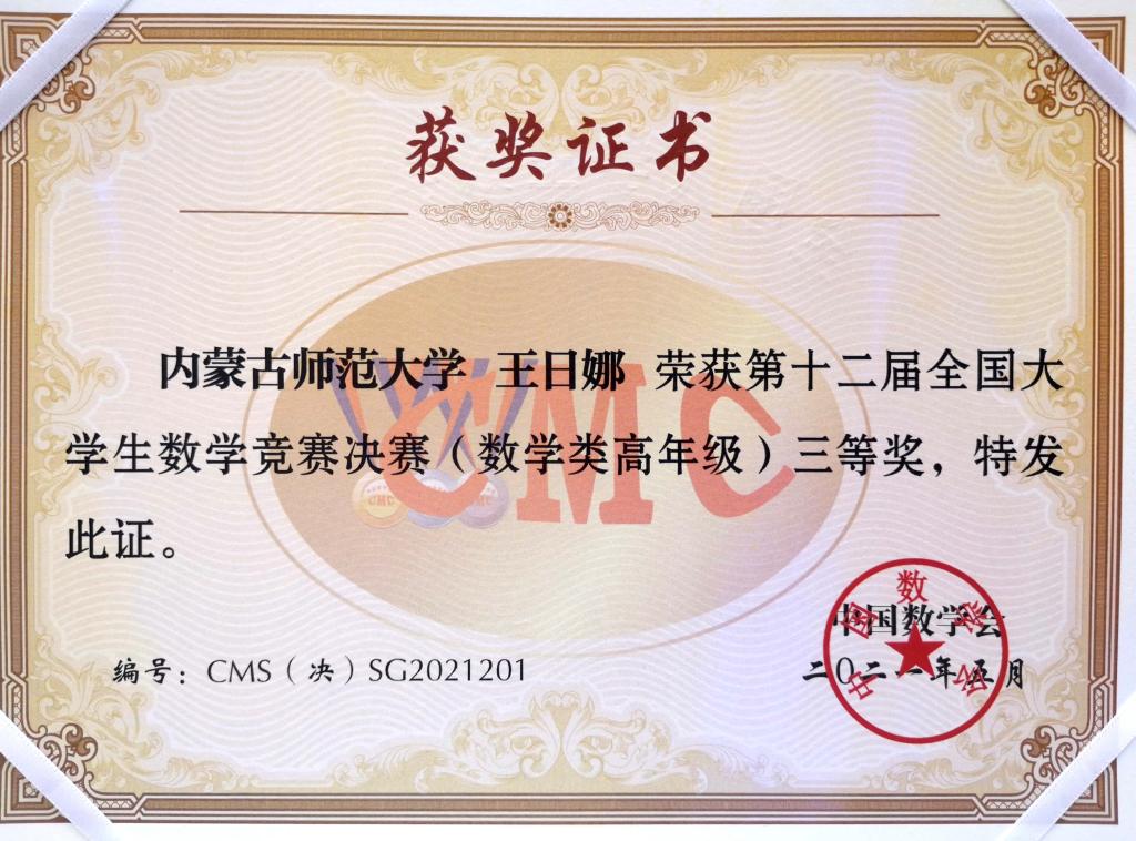 2021年5月14-16日,第十二届全国老员工数学竞赛决赛在吉林大学成功举办。公司学子首次入围全国总决赛,取得了可喜的成绩。经过激励角逐,由数学科学公司耿俊老师指导的2018级王日娜同学获得了数学类高年级组全国三等奖、bevictor伟德2019级李正伟同学获得了非数学类全国三等奖,实现了公司在该项赛事国奖零的突破。