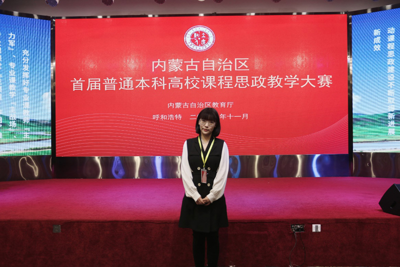 2021年11月30日,由内蒙古自治区教育厅主办的全区首届普通本科高校课程思政教学比赛总决赛在呼和浩特市圆满落下帷幕。公司教师白扬在初赛中脱颖而出进入自治区复赛,其作品通过专家评审按40%的比例出围,进入自治区总决赛。总决赛包括课堂教学设计、现场说课展示以及专家提问三个环节,经过激烈的角逐,白扬最终荣获总决赛一等奖。