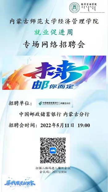 为全面贯彻落实党中央、国务院“稳就业”、“保就业”的决策部署,全面贯彻公司关于2022届毕业生就业促进周系列活动精神,公司积极开拓就业岗位,全力促进2022届毕业生尽早就业、顺利就业,实现更高质量、更加充分就业 ,5月11日特邀请中国邮政储蓄银行内蒙古分行举办线上专场招聘会。会议由韩丽主持。