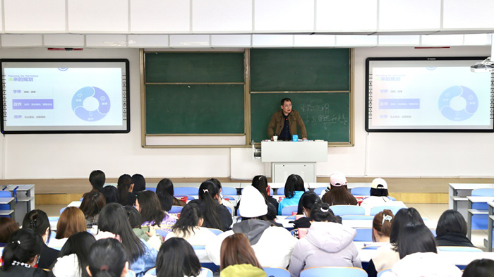于宇老师结合亲身经历为同学们分析了当前就业形势的复杂性、严峻性。通过列举当今社会60后与90后就业现状,让同学们体会到就业创业的危机感和现实感。根据就业趋势为同学们讲解了公务员考试、事业单位招聘考试及研究生考试的学习方法和相关细节。于老师提醒同学们要重视春季招聘会和线上招聘会,为同学们职业生涯发展提供了有效思路。