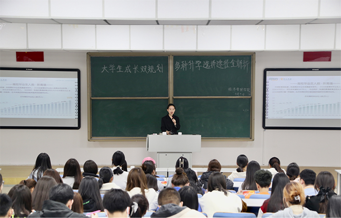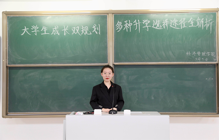 为增进同学们对海外升学渠道的了解,加深对留学程序的认识,加强员工出国交流深造的信心,更好地适应海外一流大学的硕士课程学习模式,落实 “春季促就业”行动,促进毕业生高质量就业。 3月7日晚,公司特邀新东方教育科技集团有限公司前途出国主管、金牌讲师陈胜老师以“老员工成长双计划多种选择途径全解析”为题,对出国留学项目进行了专题介绍,辅导员宝苏雅拉老师主持讲座。