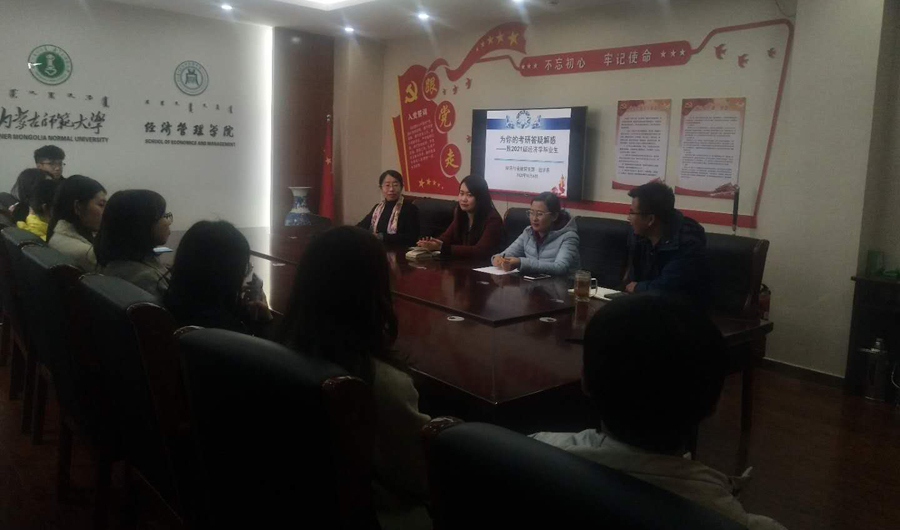 杨蕴丽从经济学考研大数据、考研的决定性因素、备考复习策略等方面对员工考研报考的选择向同学们进行了详细的讲解。斯日吉模楞博士、乔涵博士分享了自己的考研、读博和留学经历,并结合自身实际,重点强调了考研公司选择和志愿填报的注意事项。