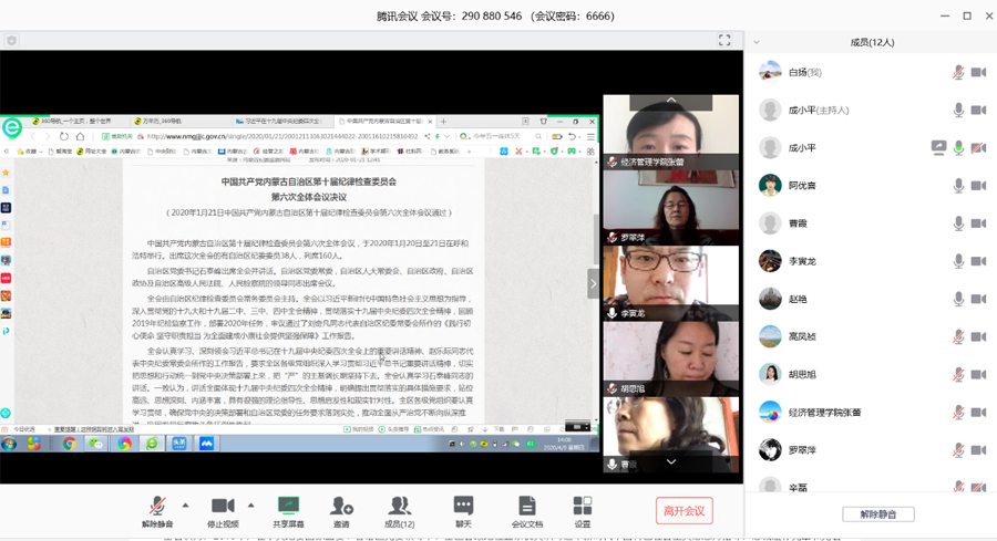 众志成城、共克时艰。2020年4月2日,经济与金融党支部全体11名党员以视频会议形式开展了主题党日活动,学习了《中共中央第十九届中央纪律检查委员会第四次全体会议公报》和《习近平在十九届中央纪委四次全会上的重要讲话》,由支部书记杨蕴丽主持并进行了领学。