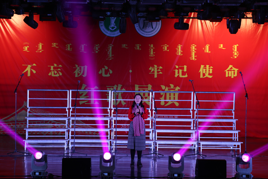 传承红色基因,唱响红色经典,一曲曲动人心弦的经典红歌饱含深情,嘹亮的歌声仿佛在提醒我们不能忘记革命时期的峥嵘岁月,牢记来时路。《不忘初心》、《没有共产党就没有新中国》、《保卫黄河》等歌曲唤起大家对峥嵘岁月的回忆,激励我们不忘初心,砥砺前行;《我和我的祖国》、《祖国母亲》、《歌唱祖国》、《爱我中华》等歌曲,赞祖国盛世,道出了中华儿女对祖国的深厚感情;《走向复兴》、《天耀中华》等歌曲气势恢宏,震撼人心,共同祝愿祖国繁荣昌盛。