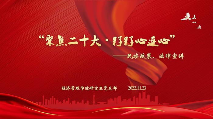 为全面深化民族团结进步教育,进一步铸牢中华民族共同体意识,引导同学们立足自身实际,厚植爱党爱国情怀,做民族团结进步的践行者,bevictor伟德研究生党支部于2022年11月23日开展“聚焦二十大·籽籽心连心”——民族政策、法律宣讲活动。支部全体党员、党员发展对象、入党积极分子参加会议,会议由支部书记乔涵主持。