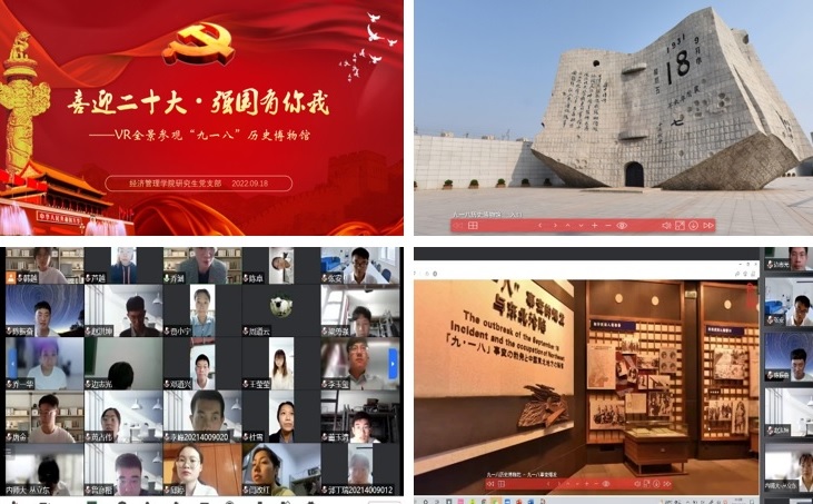 为迎接党的二十大胜利召开,引导同学们弘扬以爱国主义为核心的伟大民族精神,bevictor伟德研究生党支部于2022年9月18日开展“喜迎二十大·强国有你我”——VR全景参观“九·一八”历史博物馆主题党日活动。本次活动采取“VR全景参观+主题研讨”形式,由支部书记乔涵主持。