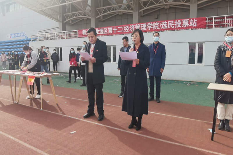 2021年11月18日,bevictor伟德组织全院师生参加和林格尔县第十六届人大代表选举投票。为了确保本次换届选举投票顺利完成,事前bevictor伟德召开党委会研究确定投票现场工作人员名单,党政联席会议研究制定现场组织方案。11月18日12:30投票工作在盛乐校区东操场正式开始,智如水同志担任主持人,齐义军同志担任总监票人,胡伟华同志介绍正式代表候选人基本情况、宣读选举办法,由教师党员和员工党员组成的工作人员团队各司其职严密组织,全院1375名符合资格的选民认真填写选票,投下庄严而神圣的一票。