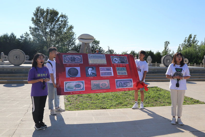 本次活动主要参观了芍药园、国防教育基地、中华钱币坛三个景点。由本科生组成的讲解队结合平时所学为师生进行了讲解。在芍药园,师生们了解到和林县秉持“绿水青山就是金山银山”的科学发展理念,大力发展生态旅游产业有效带动了当地经济发展,同时生态文明建设也极大的改善了当地居民的居住环境,提高了人民生活水平。在国防教育基地,员工讲解员带领师生们回顾了人民军队从弱小走向强大的武器装备发展历程。在中华钱币坛,员工讲解员向师生们介绍了中华民族货币发展史,重点介绍了革命战争年代各地苏区、解放区曾经发行过的货币、金融机构和金融制度。