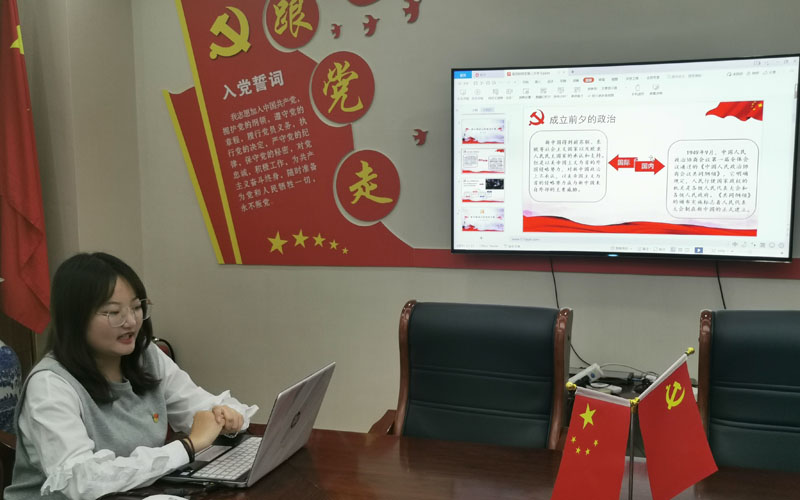 本科生第一党支部五个学习小组分别关于《中国共产党简史》中第五到第九章的内容开展了微党课讲授。分别是《社会主义改造的基本完成和社会主义制度的建立》、《社会主义道路的艰辛探索》、《国民经济的恢复和各项建设的展开》、《中华人民共和国的成立和新生人民政权的巩固》、《南方谈话》。在讲解中,各小组利用视频、图片、现场互动等方式展现了从中华人民共和国成立到南方谈话,新中国从一穷二白到思想解放再到经济发展的全过程。