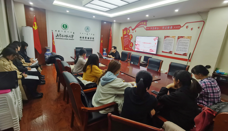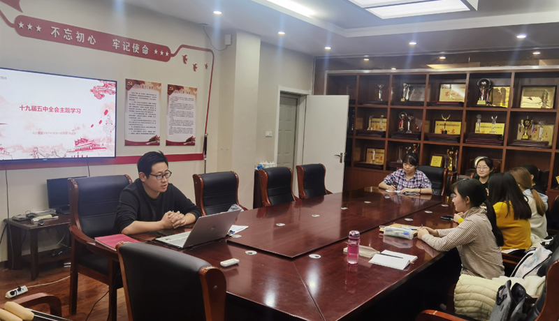 11月11日晚,本科生第一党支部在公司楼小会议室举办主题党日活动,学习《党的十九届五中全会》公报,支部全体党员参加了本次学习。