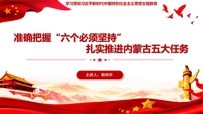 胡伟华同志以《准确把握“六个必须坚持”,扎实推进内蒙古五大任务》为题,从必须坚持人民至上、坚持自信自立、坚持守正创新、坚持问题导向、坚持系统观念、坚持胸怀天下六个角度进行了解读,诠释了贯穿其中的立场观点方法。“六个必须坚持”既是对习近平新时代中国特色社会主义思想世界观和方法论的科学概括和高度凝练,也是扎实推进内蒙古五大任务的根本遵循。
