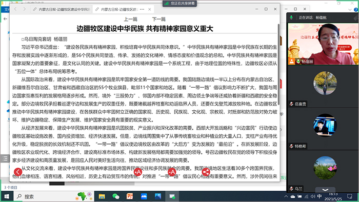 5月25日,结合专题教育和公司《开展民族团结“三月一周”工作方案》有关要求,党支部书记杨蕴丽以《边疆牧区建设中华民族共有精神家园意义重大》为题讲了一次专题党课。中华民族共有精神家园是56个民族共同塑造、传承和发扬的文化精神、情感态度和价值观。由于地理位置的特殊性,边疆牧区建设中华民族共有精神家园是筑牢国家第一道安全防线的需要,是巩固脱贫攻坚和实现乡村产业振兴的需要,是跨国界民族交往和多民族融合的需要,是增进各族人民民生福祉的需要,是打造祖国北疆亮丽风景线的需要,必须从“五位一体”总体布局统筹谋划、系统推进,引领各族人民为实现中华民族伟大复兴而奋斗。有关文稿已经在《内蒙古日报》上发表。