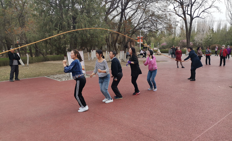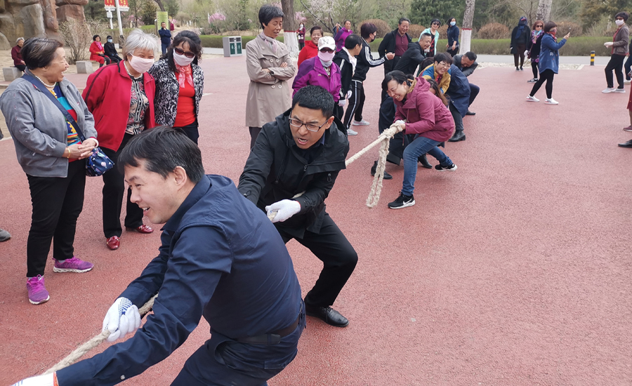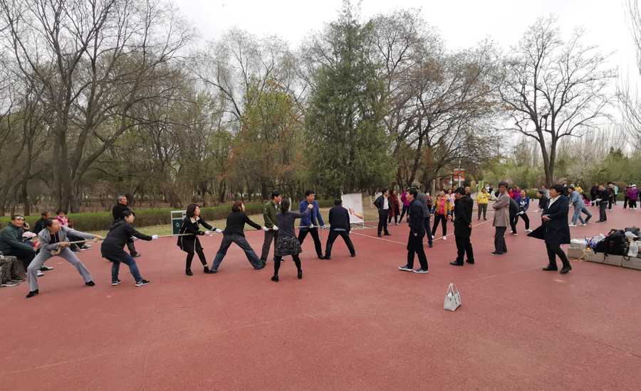 三、开展体育友谊赛。以党支部为单位分三组进行了单人跳绳、多人跳绳、拔河比赛等体育活动。在拔河比赛时,公园里的围观群众也热情高涨,一起为党员同志们呐喊助威。通过体育活动,使同志们认识到了有氧运动对身体健康的益处,表示一定要加强锻炼,强身健体,以斗志昂扬的精神面貌投入到工作中去。