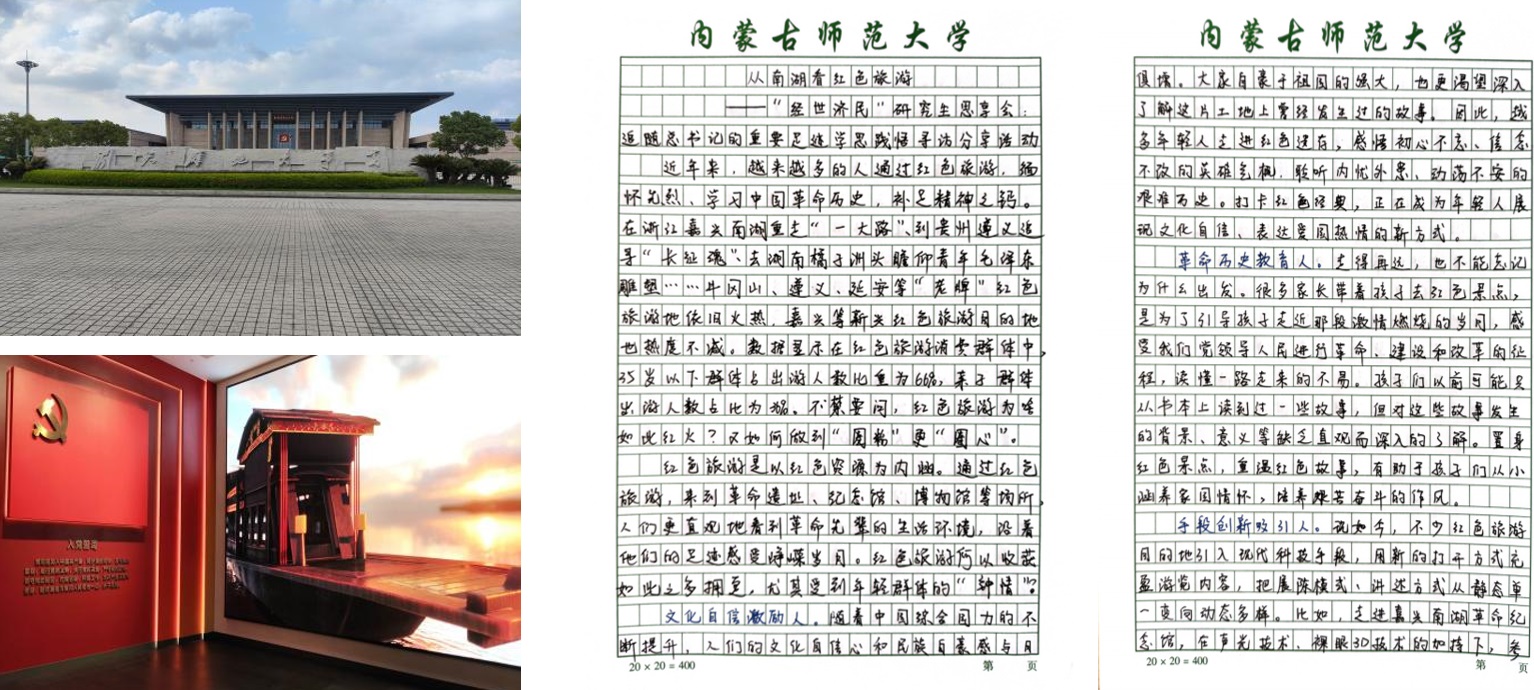 2022级党员发展对象朱家铭追随习近平总书记的足迹来到浙江嘉兴南湖红船。2017年10月31日,习近平总书记在浙江嘉兴南湖红船前强调,“上海党的一大会址、嘉兴南湖红船是我们党梦想起航的地方。我们党从这里诞生,从这里出征,从这里走向全国执政。这里是我们党的根脉。”在参观过程中,他深刻感受到红船精神的伟大力量,表示要牢记初心使命,继承和发扬党的优良传统,为实现中华民族伟大复兴的中国梦贡献力量。