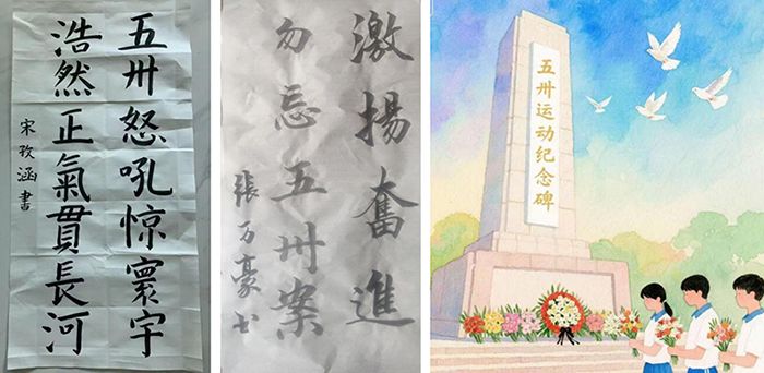 在此次活动中,研究生们采用绘画、书法、摄影、短视频等艺术形式分享自己对“五卅运动”历史意义的理解与感悟,重温波澜壮阔的革命历程,回望峥嵘岁月中革命先辈的不屈风骨。