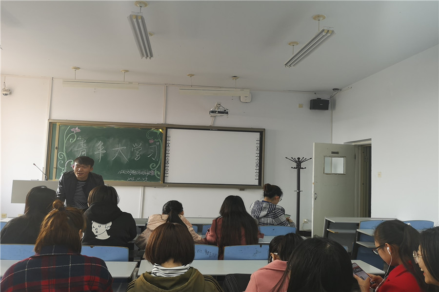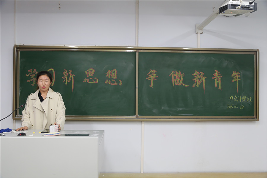18会计理班团员代表发言:我们要深刻领会党的精神,争做时代好青年,更进一步的学习十九大精神的理论知识以及共青团的基本知识,以此来增进历史责任感和民族自豪感,践行青春誓言,不辱青春使命。