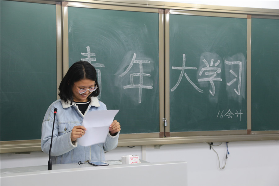 16会计班团员代表发言:“青年兴则国家兴,青年强则国家强”,我们要牢记为中国人民谋幸福,为中华民族谋复兴的初心和使命。