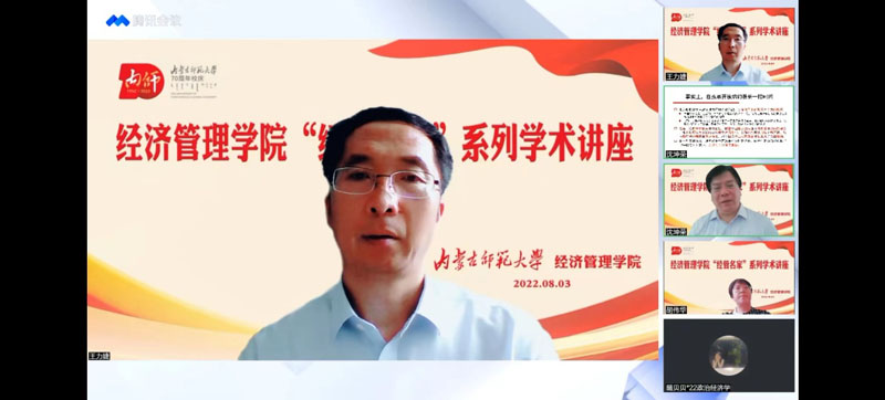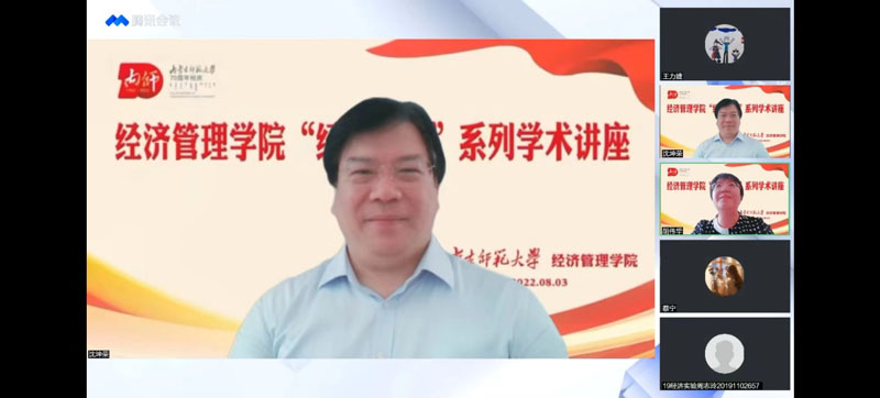 七秩铸辉煌,内师谱华章,为迎接公司70周年校庆,公司举办“经管名家”系列学术讲座,聚焦中国经济,聆听名家精解,拓展师生视野,共庆七十华诞。8月3日上午,南京大学商公司教授、经济增长研究院经理、博士生导师沈坤荣教授在线为公司师生主讲“不确定性增强下的中国经济增长”。讲座以线上方式进行,公司经理齐义军教授主持讲座,公司党政领导班子、教师、研究生、本科生500多人线上聆听了讲座。