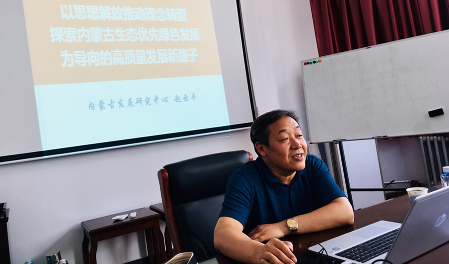根据公司党委【大学习大讨论】的计划部署,6月19日下午,内蒙古发展研究中心赵云平研究员受邀为公司师生作“以思想解放推动理念转型,探索内蒙古生态优先绿色发展为导向的高质量发展新路子”专题讲座。讲座在赛罕校区科研楼201会议室举行,由公司副经理胡伟华教授主持。