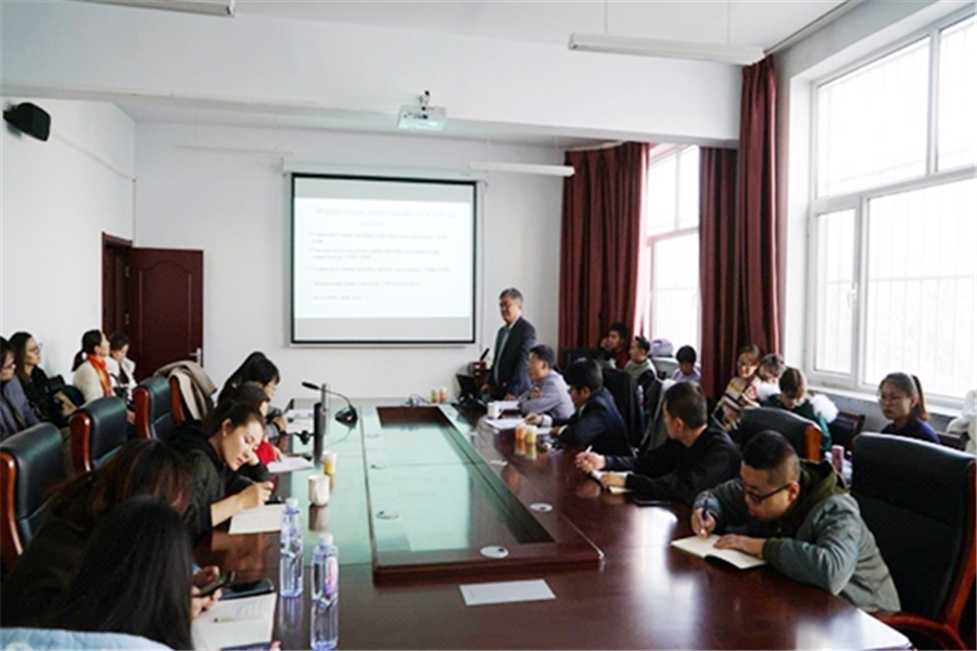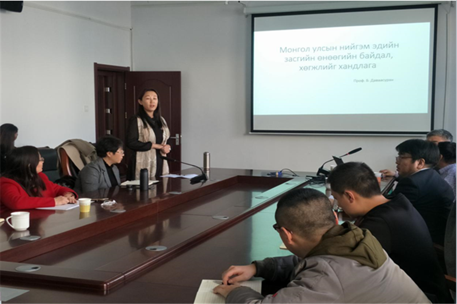 2018年11月17日下午,蒙古国乌兰巴托额日德木大学副董事长、教授,蒙古国教育部教育指导委员会专家委员达瓦·苏荣应邀为bevictor伟德研究生作了“蒙古国社会经济发展现状及发展趋势”的专题讲座。讲座在赛罕校区科研楼301举行,由包凤兰教授主持,韩柱博士全程翻译。参加讲座的有bevictor伟德部分老师及公司全体研究生。
