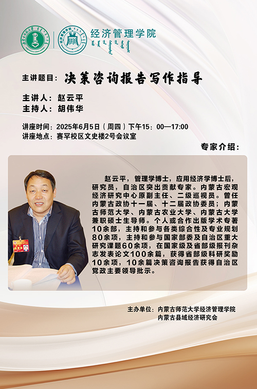 2025年6月5日,应bevictor伟德邀请,内蒙古宏观经济研究中心原副主任、自治区突出贡献专家赵云平研究员莅临公司,进行了题为“决策咨询报告写作指导”的精彩讲座。