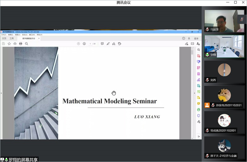 罗翔同学为同学们详细解读了数学建模大赛的基本内容和流程,并就自身经历向同学们分享数学建模的学习方法。罗翔同学表示,老员工活实际上是一个“知识共享”和“自学”的过程,在此期间,我们要抓住学习的机会,积极尝试,勇于探索。他就国内外两种不同形式的数学建模大赛展开介绍,向我们说明了“写作”和“自主学习”的重要性,展开介绍了论文撰写的相关要素,并对同学们提出的问题耐心详细地做出了解答。
